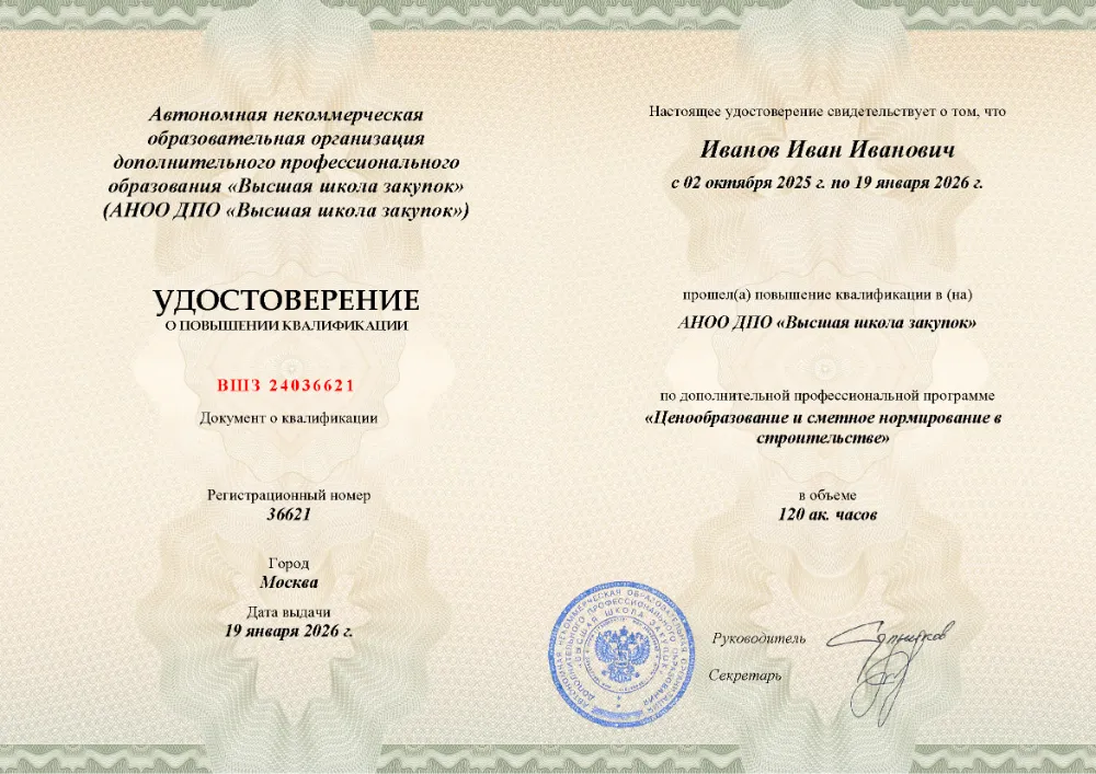 Профессиональная переподготовка, 520 академических часов, 7 модулей: сметно-нормативные базы в строительстве и виды строительства, экономическое содержание сметной стоимости, определение стоимости материалов и техники с конъюнктурным анализом цен, особенности расчета на монтаж оборудования и пусконаладочные работы, практические навыки составления смет в MS Excel методами БИМ и РМ, профессиональная работа в программе «ГРАНД-Смета». Онлайн-обучение в в Кирове с итоговой аттестацией и выдачей диплома.